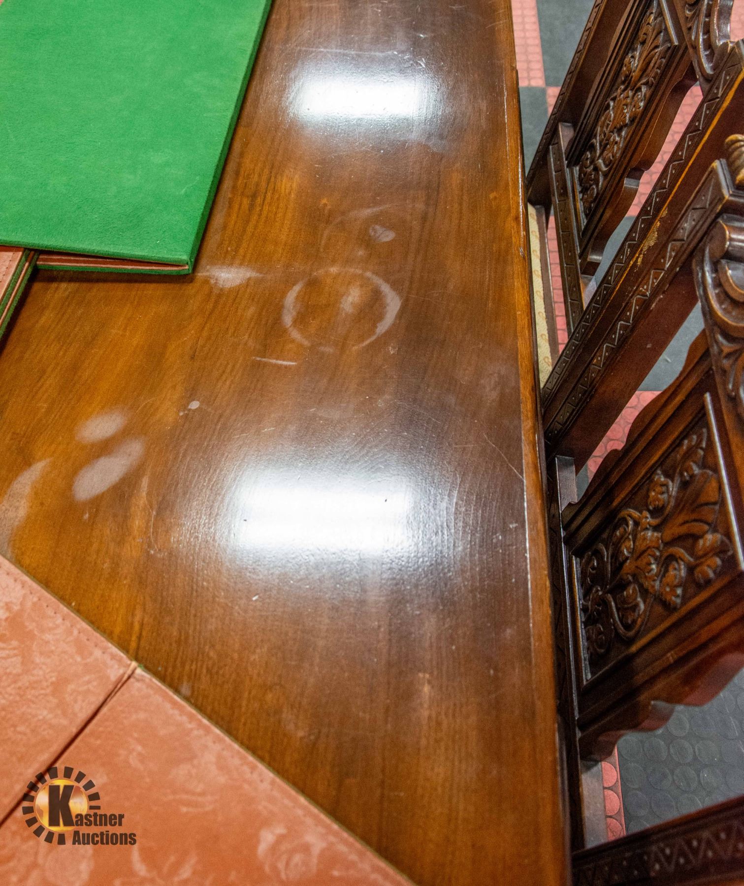 OUT LEAFS, 4 CHAIRS AND 2 HIGH BACK END CHAIRS. 70" X 39" X 30" WITHOUT LEAFS **ALL ITEMS MUST BE REMOVED BY 5PM SATURDAY, DECEMBER 9TH 2023. ALL REMAINING ITEMS WILL BE SUBJECT TO A $6.00 PER DAY STORAGE CHARGE. ANY ITEMS REMAINING AFTER THURSDAY, DECEMBER 21ST 2023 WILL BE CONSIDERED FORFEITED. NO REFUNDS WILL BE ISSUED FOR FORFEITED ITEMS. TO SCHEDULE A PICK UP APPOINTMENT CLICK HERE