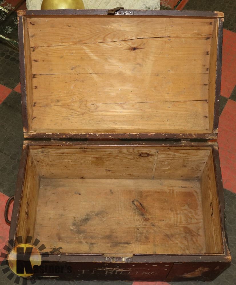 WITH ORIGINAL HARDWARE INCLUDING BLACKSMITH HANDLES, STILL HAS ORIGINAL BOARDING PASSES APPLIED. COLLECTIBLES