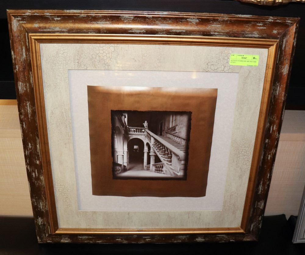 ANTIQUE STAIRCASE ART PICTURE 25"X25:.