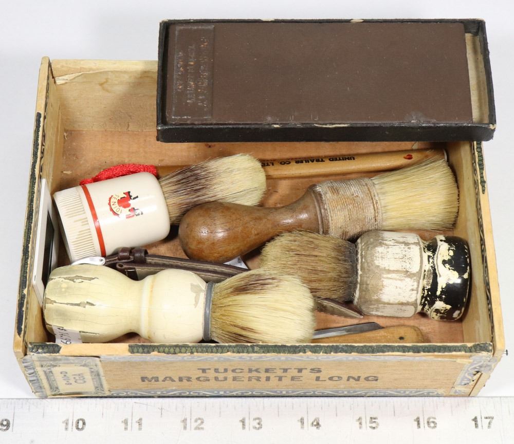 ANTIQUE STRAIGHT RAZOR BRUSHES ETC.
