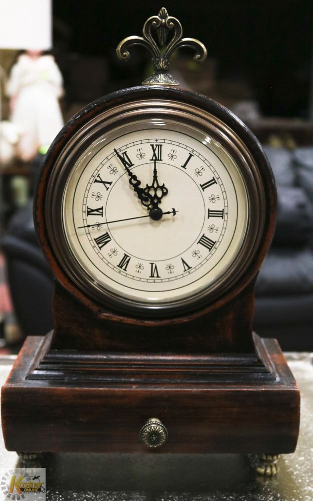 ANTIQUE STYLE MANTLE CLOCK WITH DRAWER