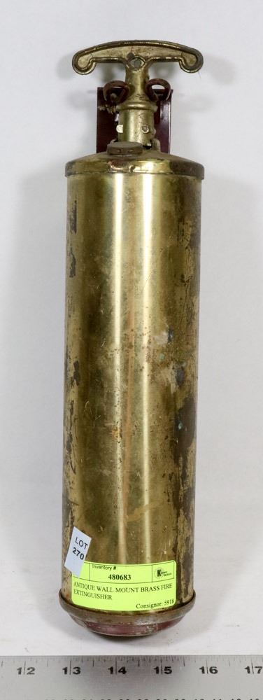 ANTIQUE WALL MOUNT BRASS FIRE EXTINGUISHER
