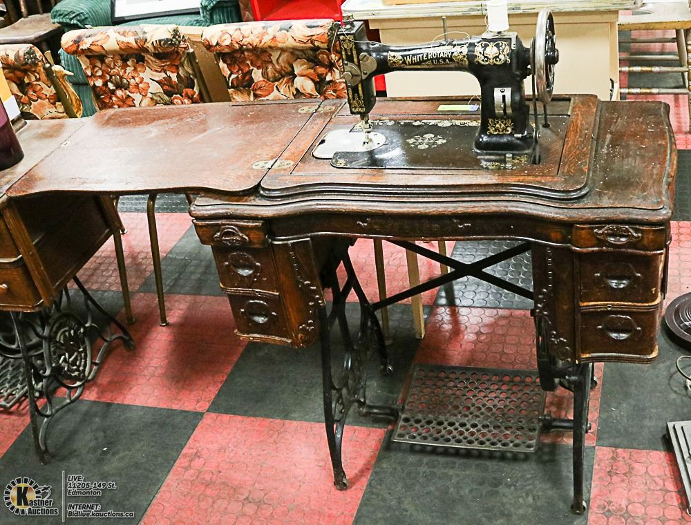 ANTIQUE WHITE ROTARY USA, TREDDLE SEWING MACHINE