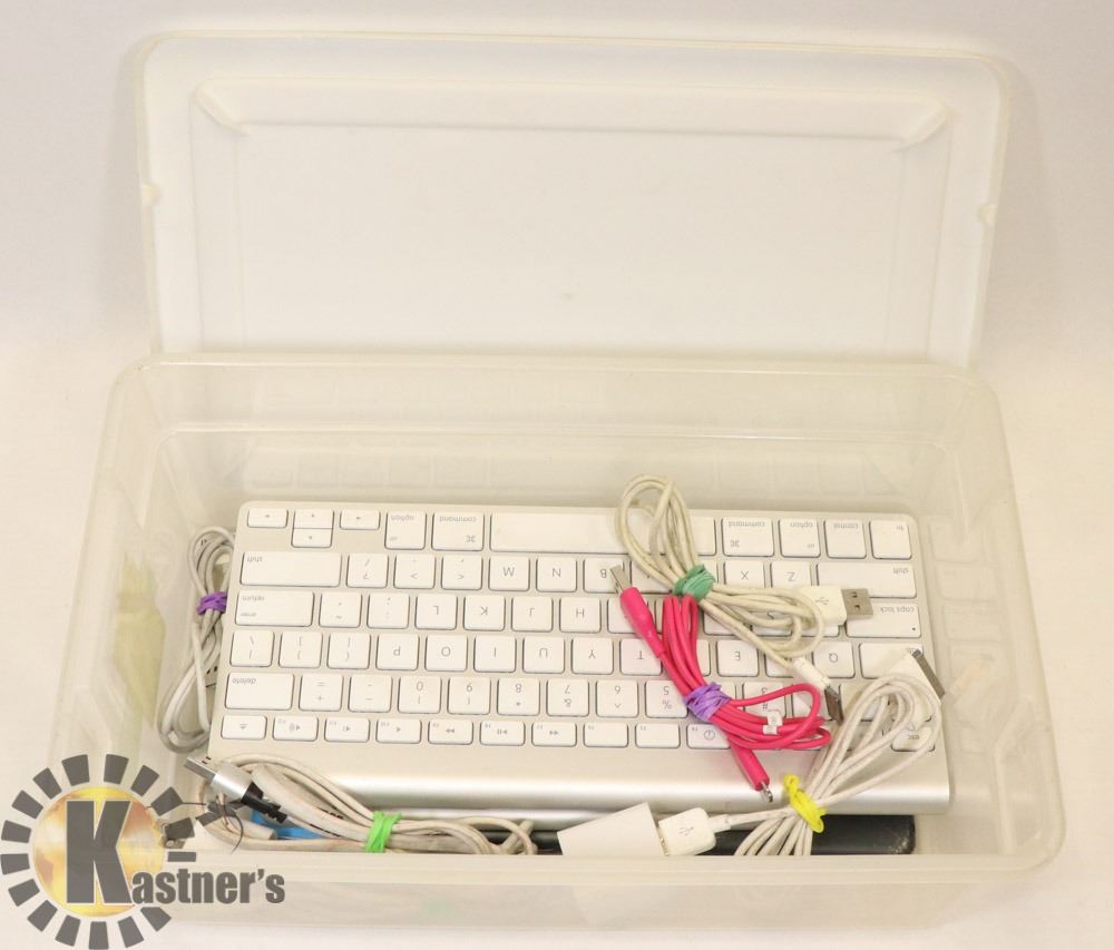 KEYBOARD, CHARGING CORDS, CUBES FOR REPAIR. ELECTRONICS