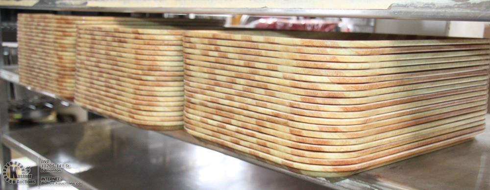 APPROX 59 WOOD COLOURED CAFETERIA TRAYS