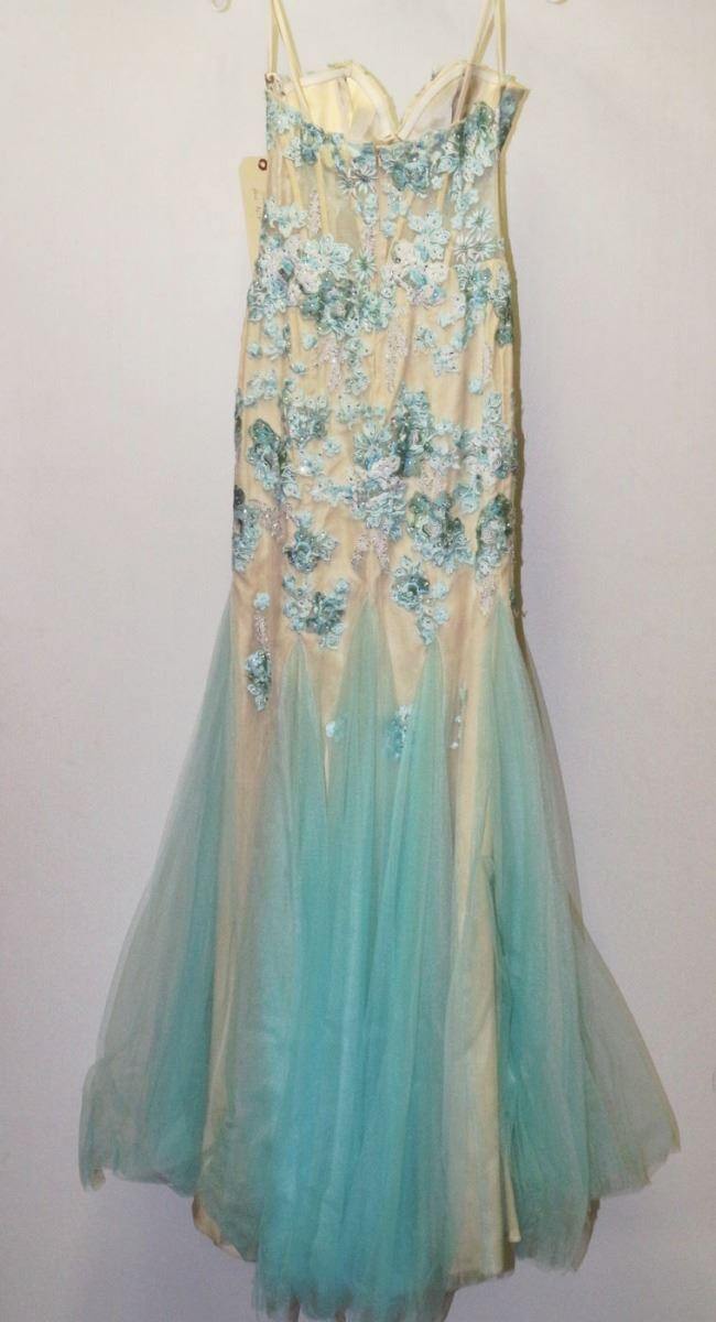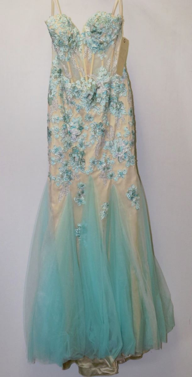 AQUA EMBROIDERED & OPAQUE LACE GOWN