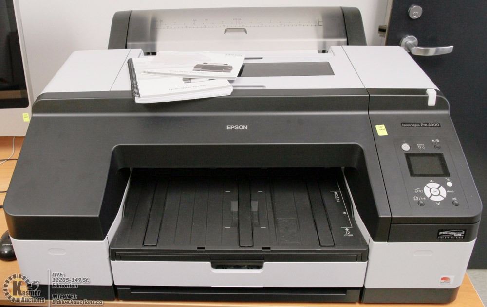 COLOR PRINTER WITH TABLE. TABLE 28"H X 62"W X 31.5"D