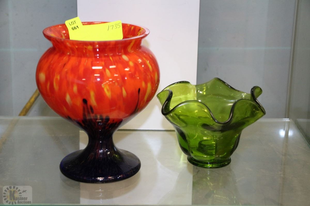 ART GLASS VASE SOLD WITH GREEN GLASS DISH