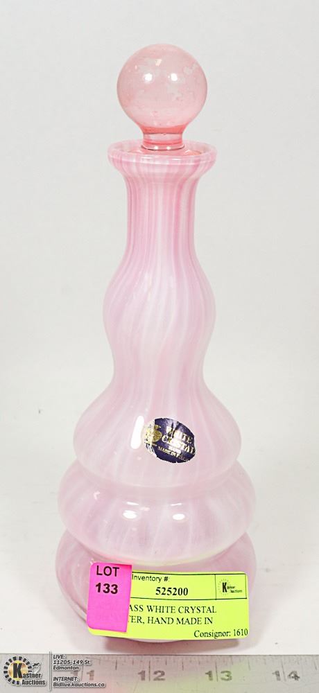 ART GLASS WHITE CRYSTAL DECANTER, HAND MADE IN