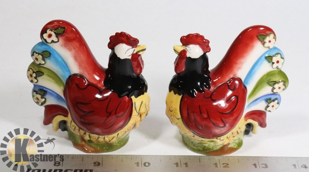 ARTHUR GOLDMINE ROOSTER SALT AND PEPPER SHAKER SET