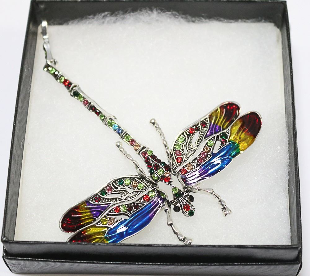 ARTICULATING TAIL DRAGONFLY RHINESTONE BROOCH