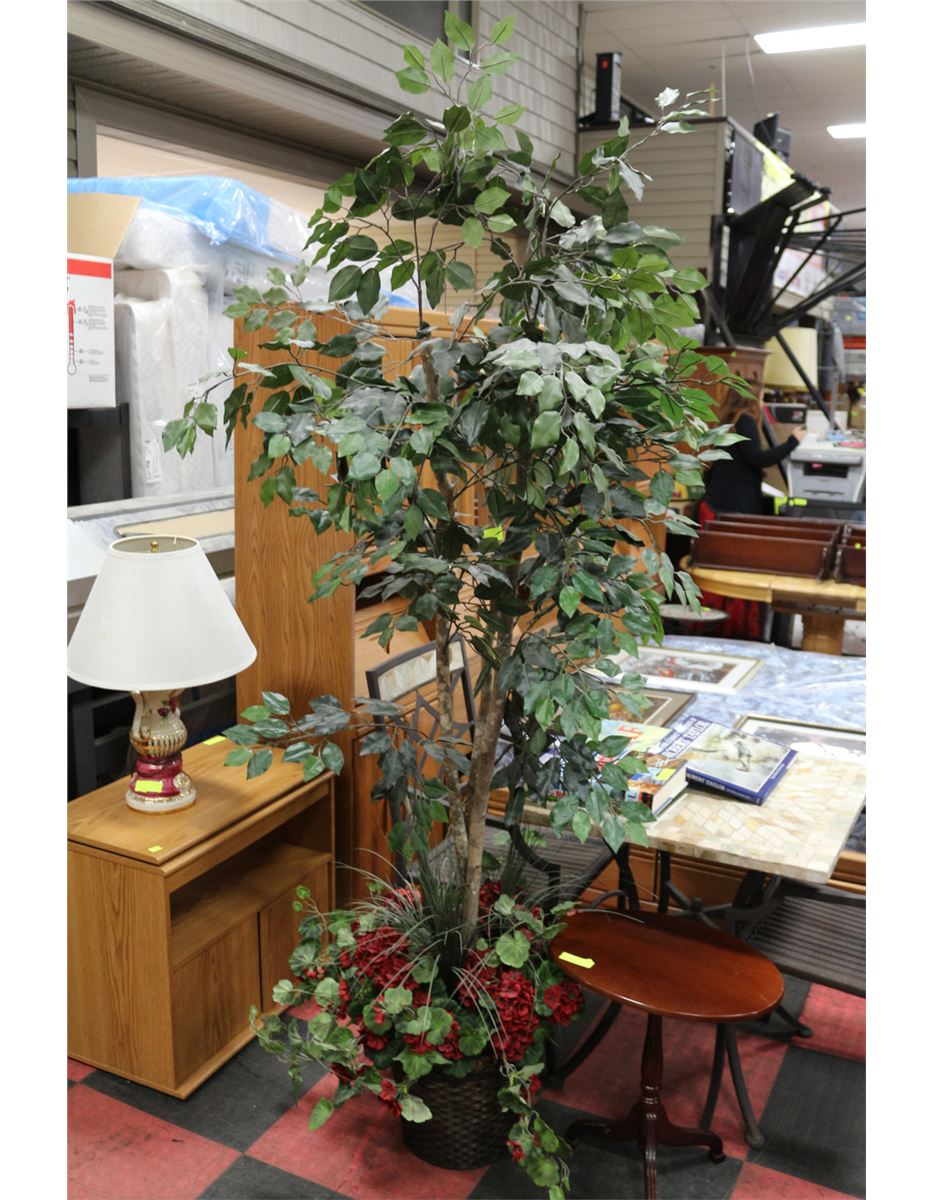 ARTIFICIAL TREE WITH FLOWERS AT BASE