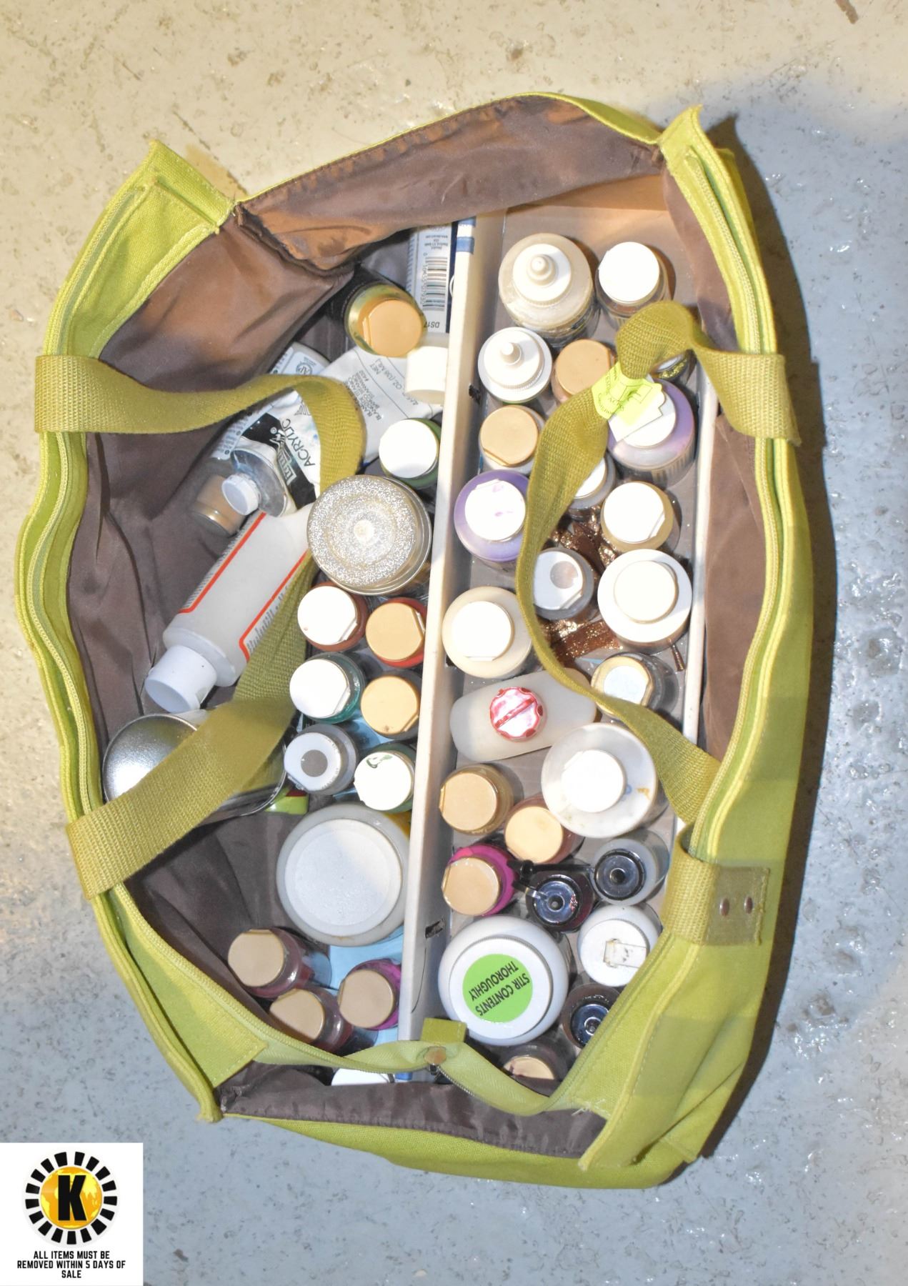 ARTIST'S GREEN BAG OF ACRYLIC PAINTS