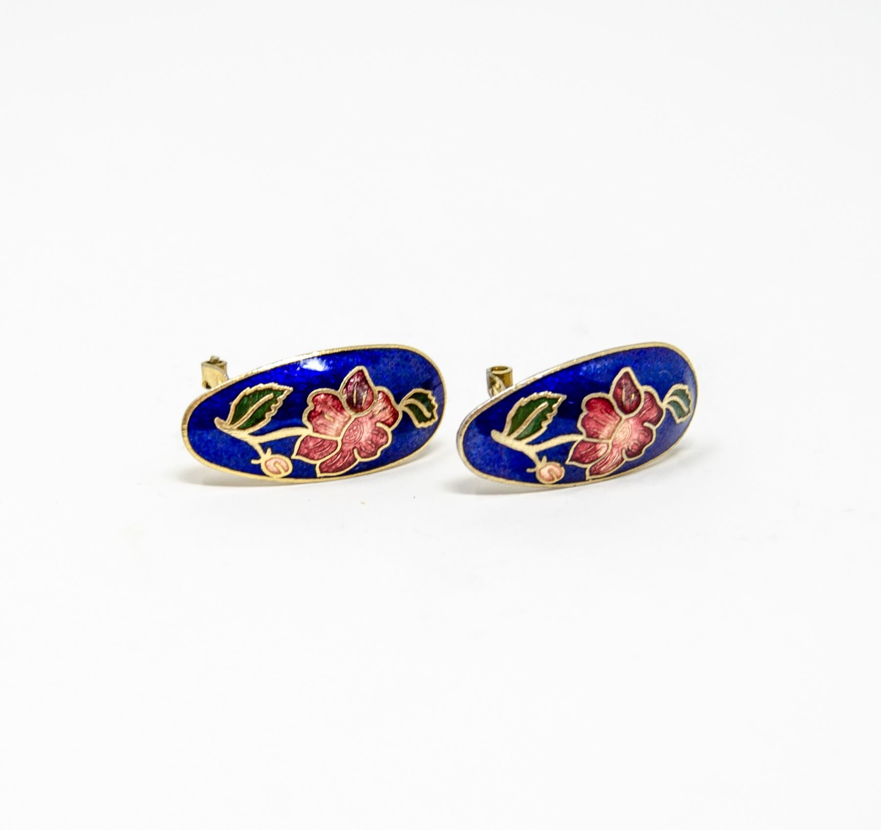 ASIAN FLORAL ENAMEL CLIP EARRINGS