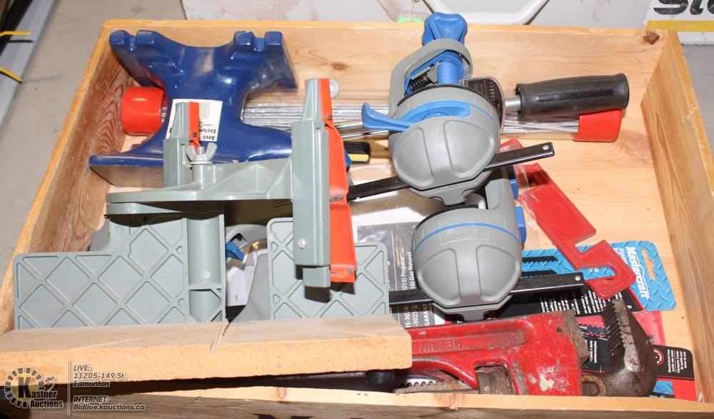 ASSORTED CLAMPS, ANVIL & PIPE WRENCH