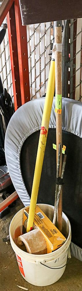 ASSORTED DRYWALL TOOLS - INCLUDES BUCKET,2 MIXING
