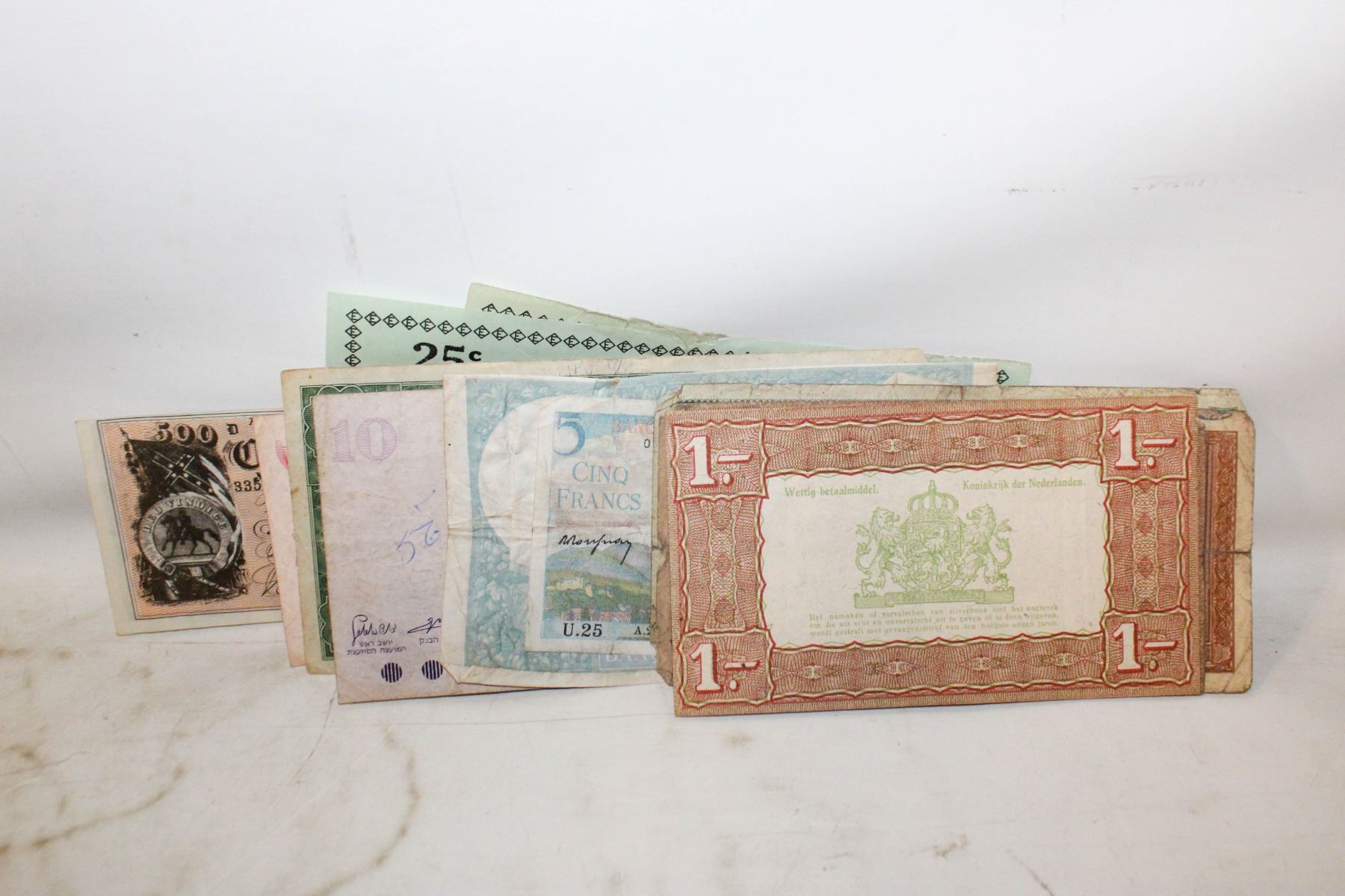 ~30 BILLS. EATONS REFUND CHEQUES, NATIONAL SOCIALIST GERMANY, INDONESIA, VENEZUELA, GUYANA, SINGAPORE, EASTERN CARIBBEAN, CHINA, FRANCE AND BANK OF ENGLAND AND ISRAEL.