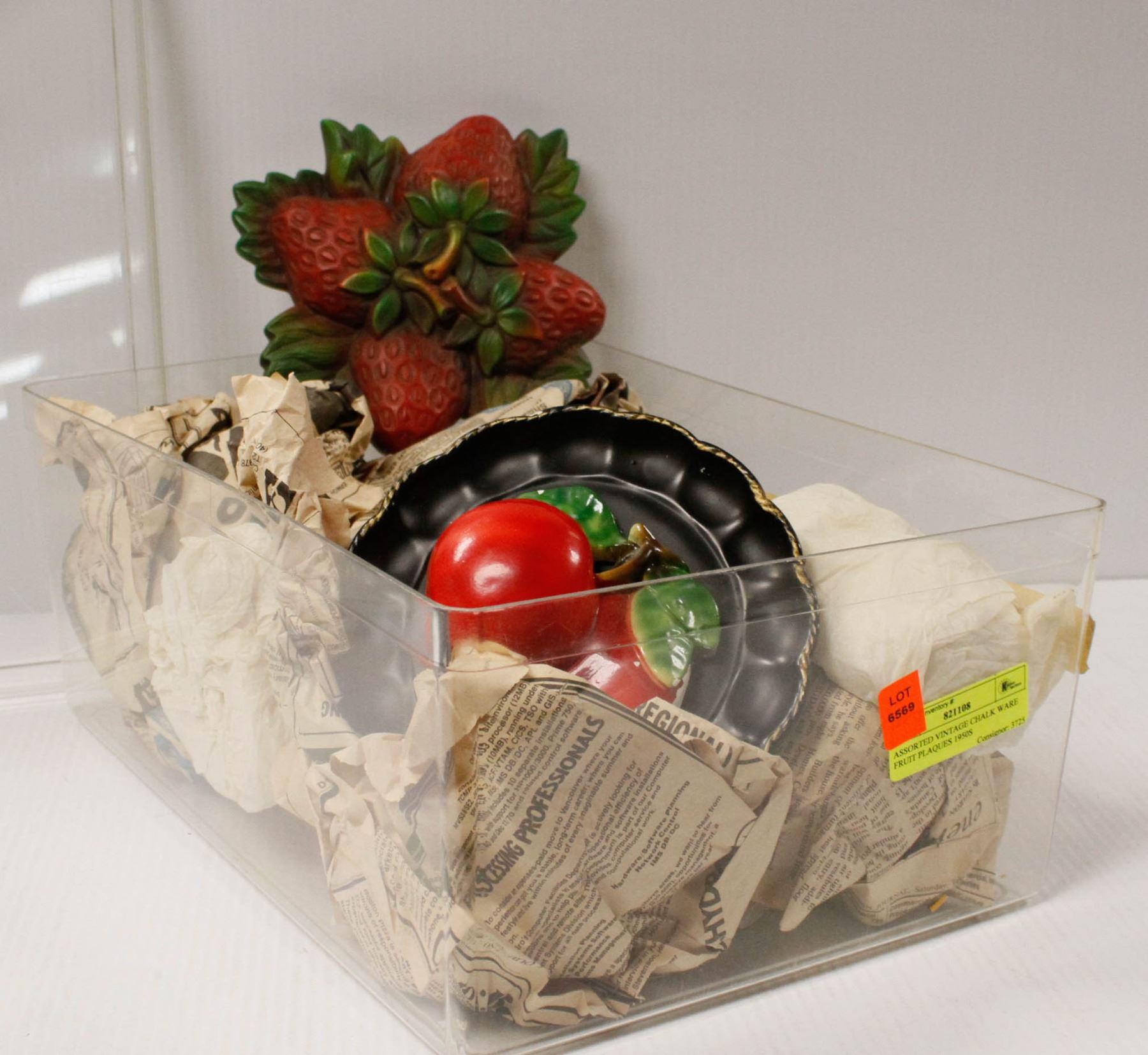 ASSORTED VINTAGE CHALK WARE FRUIT PLAQUES 1950S