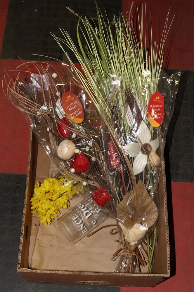 ASSORTMENT OF DRIED FLOWERS & TWO VASES