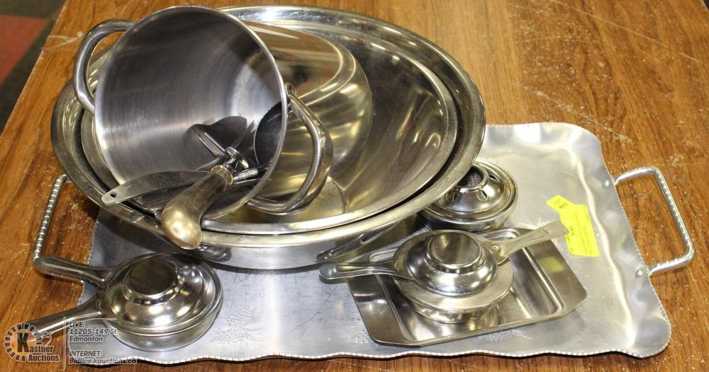 FORK,CHEESE SLICER AND WINE CHILLER BUCKET ON 427 TRAY. (TRAY IS SCRATCHED)
