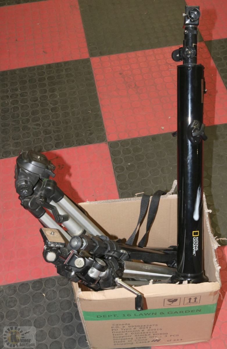 ASSORTMENT OF TRIPODS AND A TELESCOPE