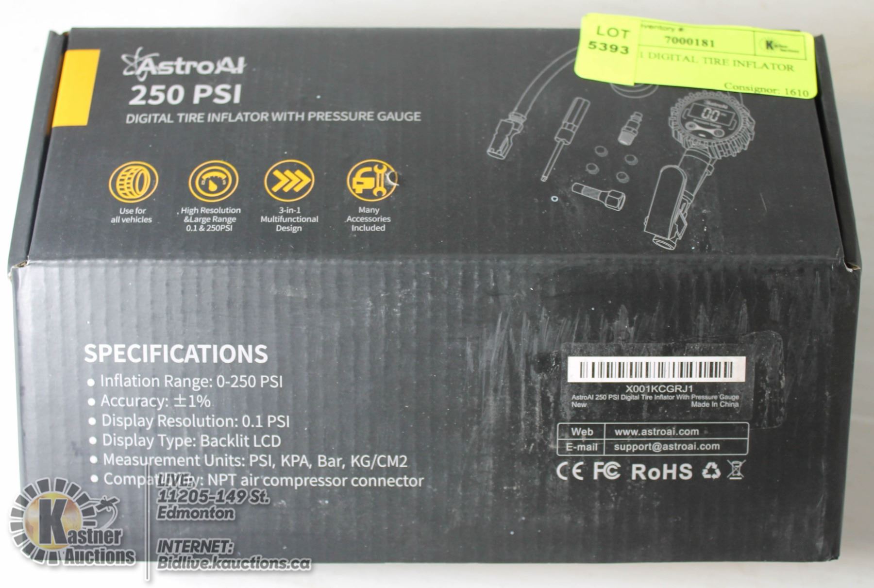 ASTRO A1 DIGITAL TIRE INFLATOR 250PSI