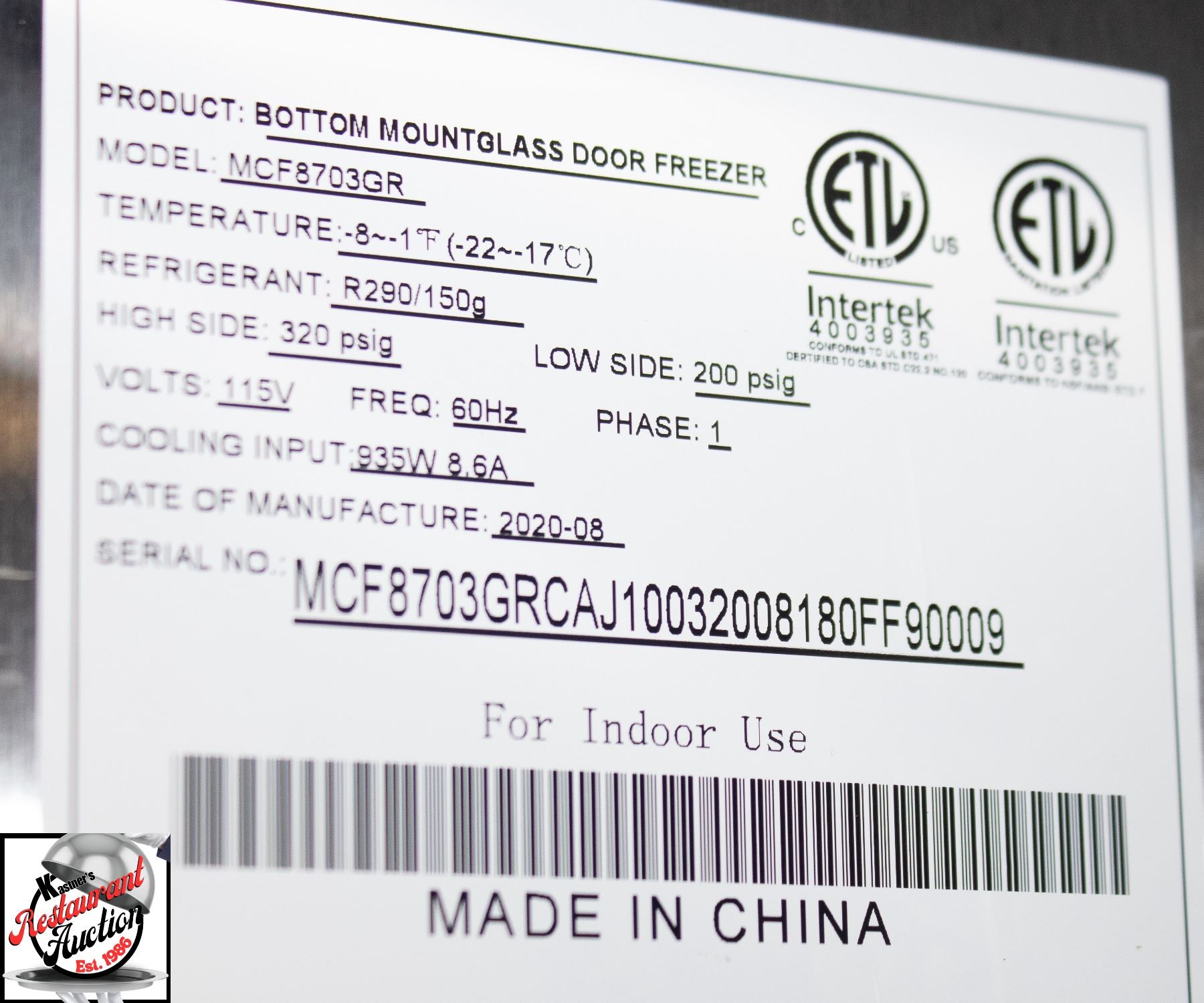 ( TESTED & WORKING ) MODEL # MCF8703GR, REFRIGERANT R290/150G, 115 VOLTS, 60 HZ, PHASE 1, 31.5" X 54" X 83"MODEL # MCF8703GR, REFRIGERANT R290/150G, 115 VOLTS, 60 HZ, PHASE 1, 31.5" X 54" X 83" ** FOOD IS NOT INCLUDED ** ***ALL EQUIPMENT WILL HAVE A 15 DAY WARRANTY, STARTING AT THE END OF THE AUCTION. SUBJECT TO TERMS AND CONDITIONS, MUST HAVE A PROOF OF A NON WORKING ITEM. ***