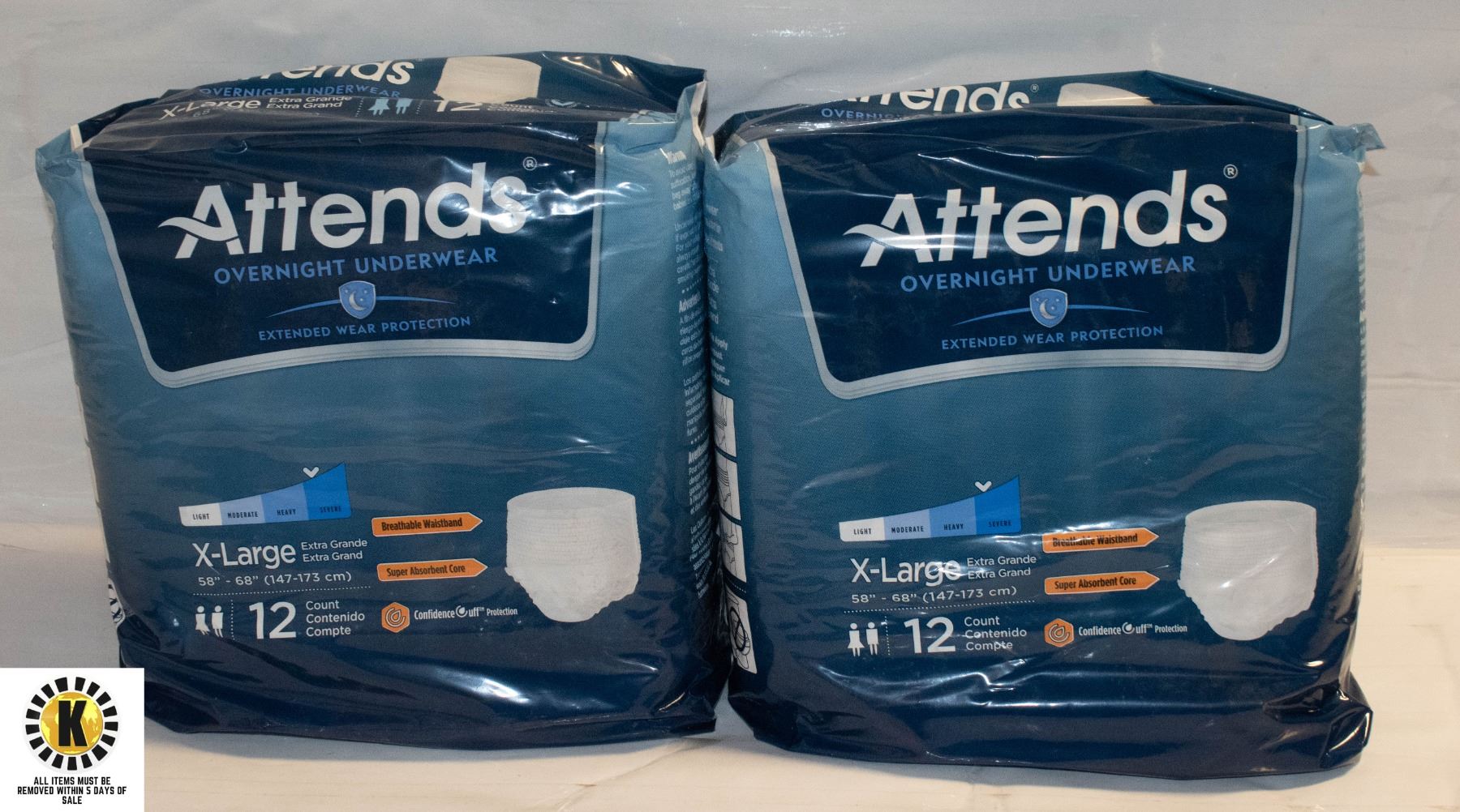 ATTENDS XL OVERNIGHT UNDERWEAR, 2 UNOPENED