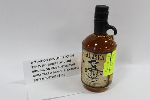 ALASKA DISTILLERY OUTLAW WHISKEY 35% 750 ML SOLD 6 TIMES THE MONEY YOUR BIDDING ON 1 BOTTLE AND MUST TAKE A MINIMUM OF 6 BOTTLES