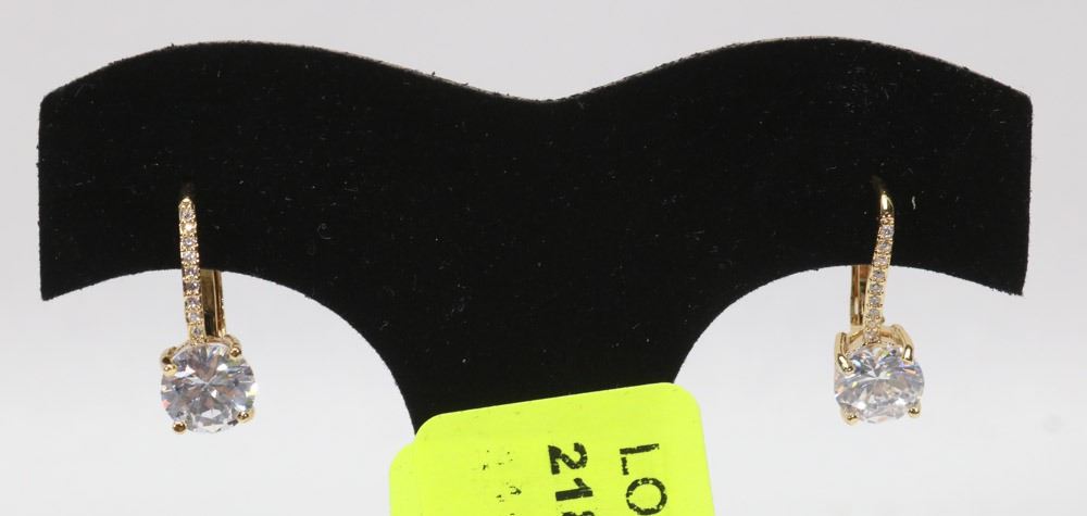 LEVER BACK STYLE WITH MICRO INLAID STONES, GOLD PLATED SETTING. JEWELRY