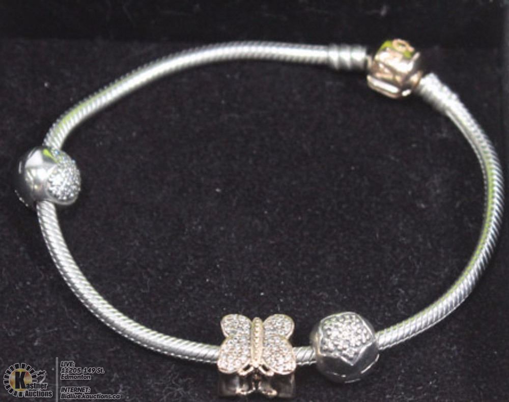 STERLING SILVER ROSE GOLD CLASP AND 2 CRYSTAL & SS CLIPS INCL ROSE GOLD CRYSTAL BUTTERFLY CHARM