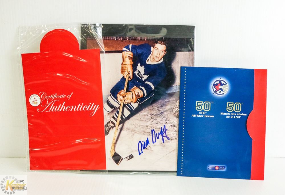 DUFF ROUNDING THE NET, HEADS UP, NICE STICK. + 50TH ALL STAR GAME STAMP COLLECTION, ROCKET, GRETSKY, HOWE, ORR ETC.