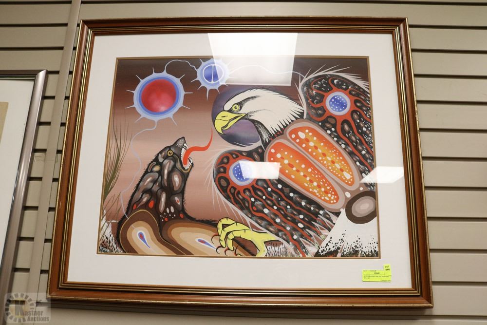 AUTOGRAPHED NATIVE PAINTING 29" X 34"