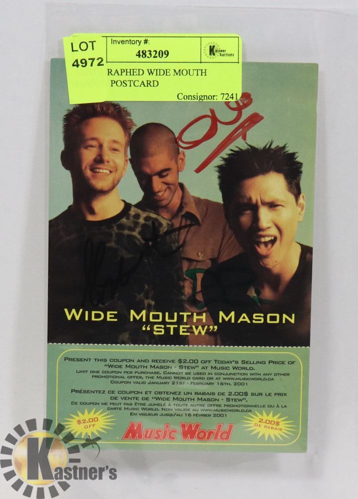AUTOGRAPHED WIDE MOUTH MASON POSTCARD