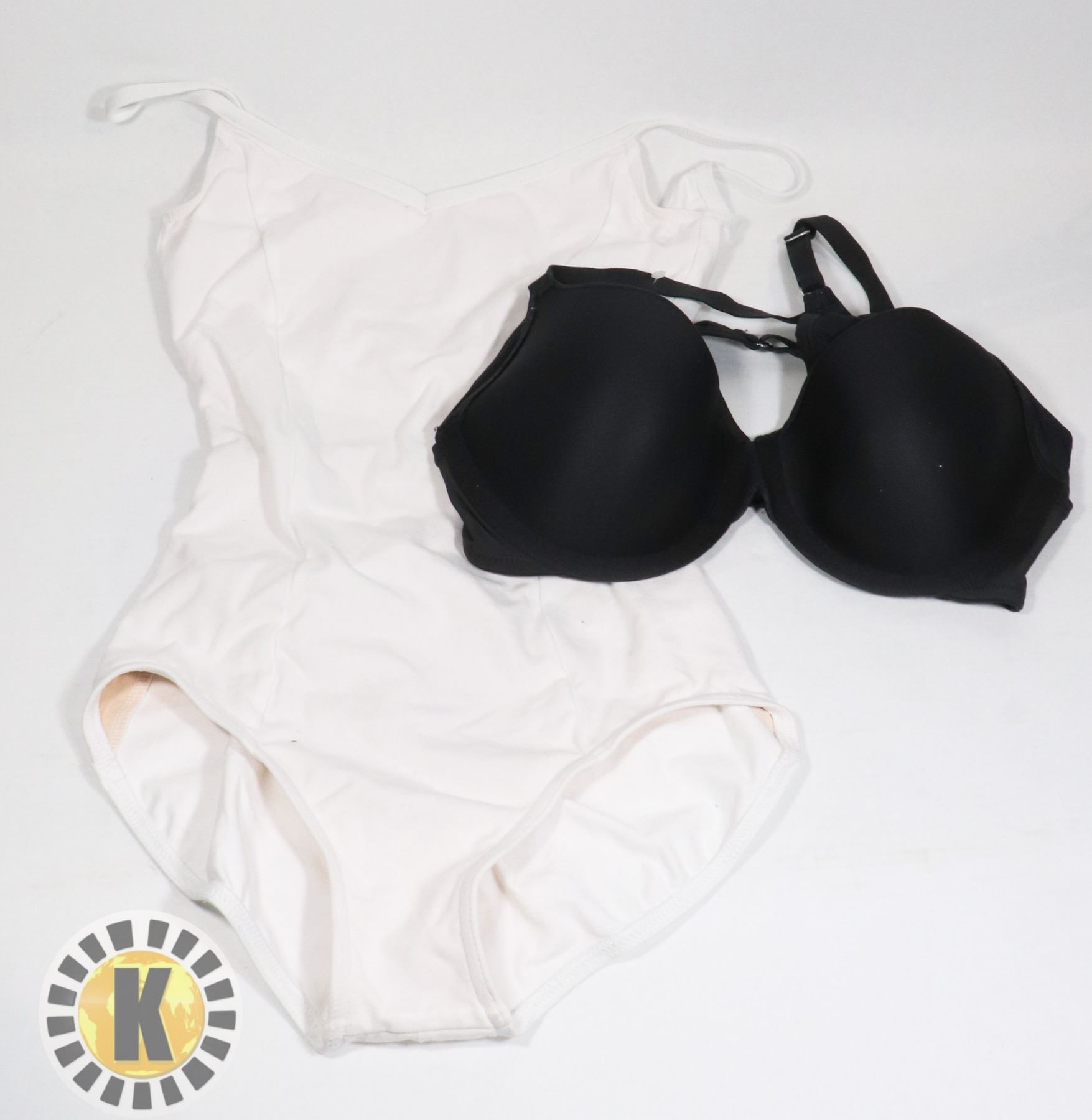 B36 BLACK BRA & WHITE BODYSUIT SIZE S