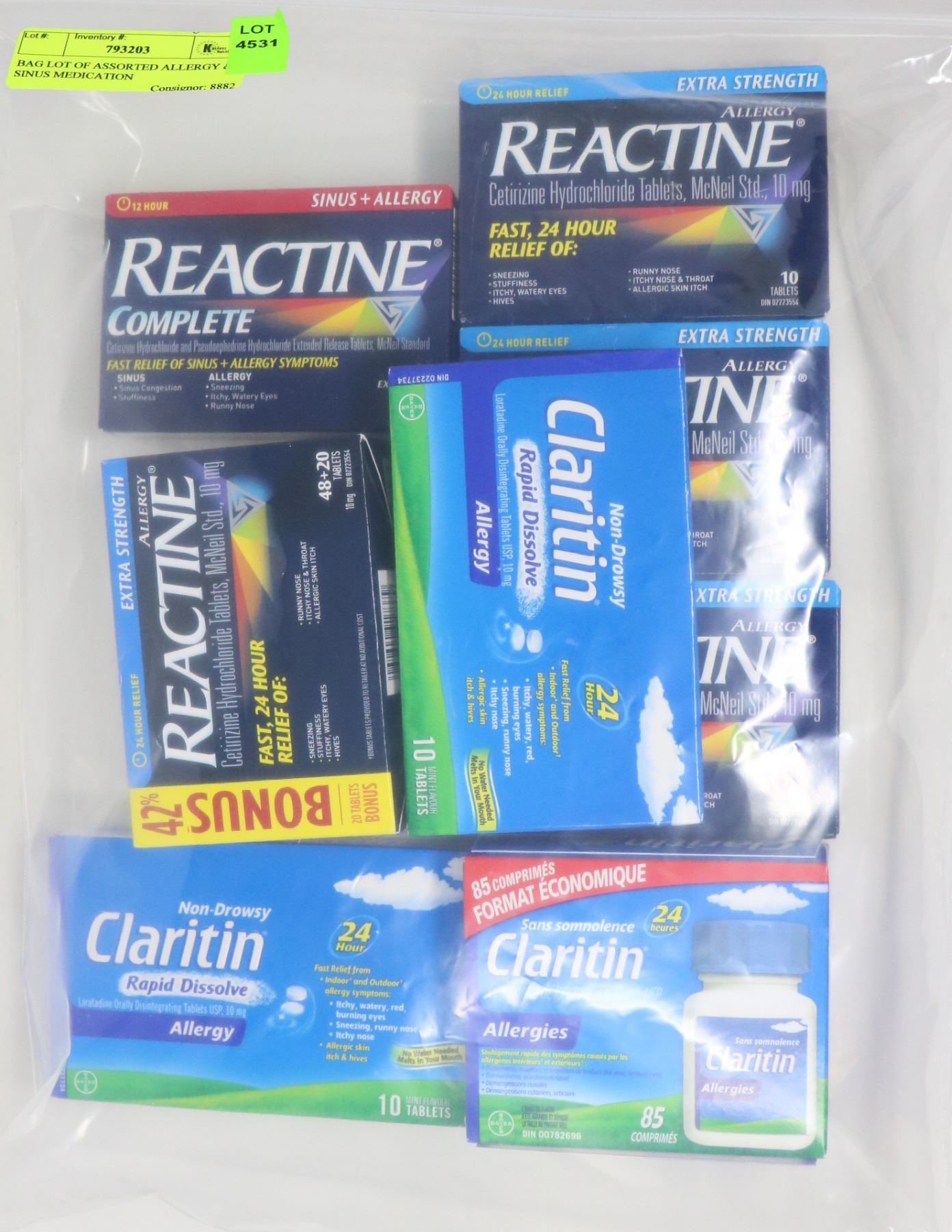 BAG LOT OF ASSORTED ALLERGY & SINUS MEDICATION