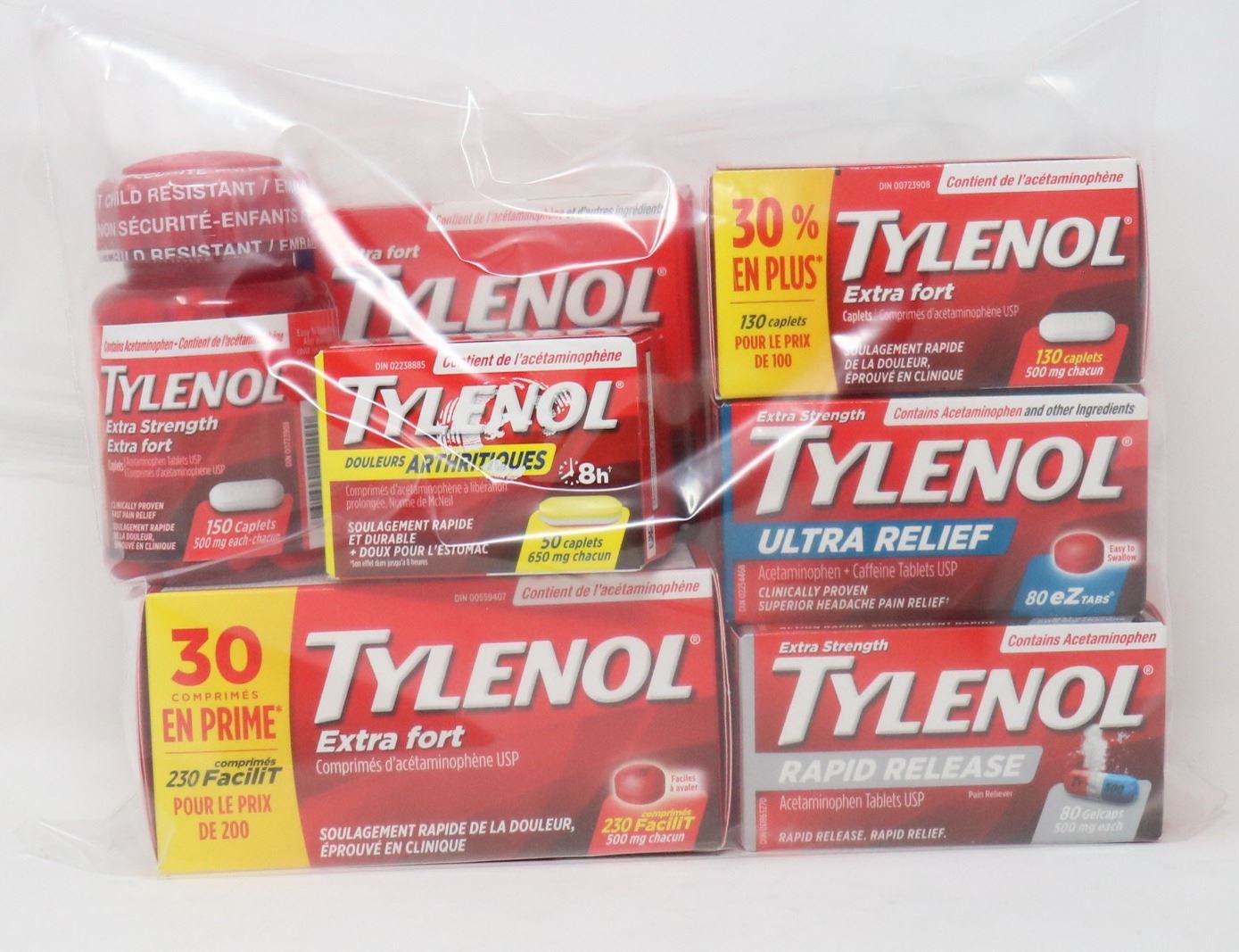 BAG LOT OF ASSORTED TYLENOL PRODUCTS