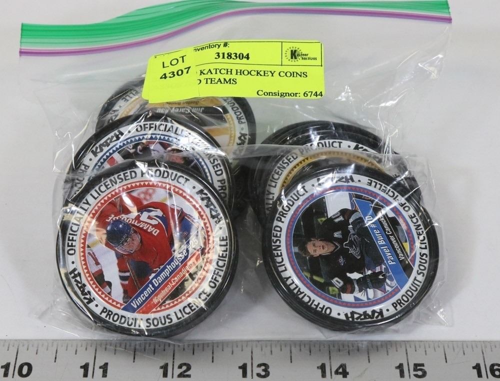 BAG OF 29 KATCH HOCKEY COINS ,ASSORTED TEAMS