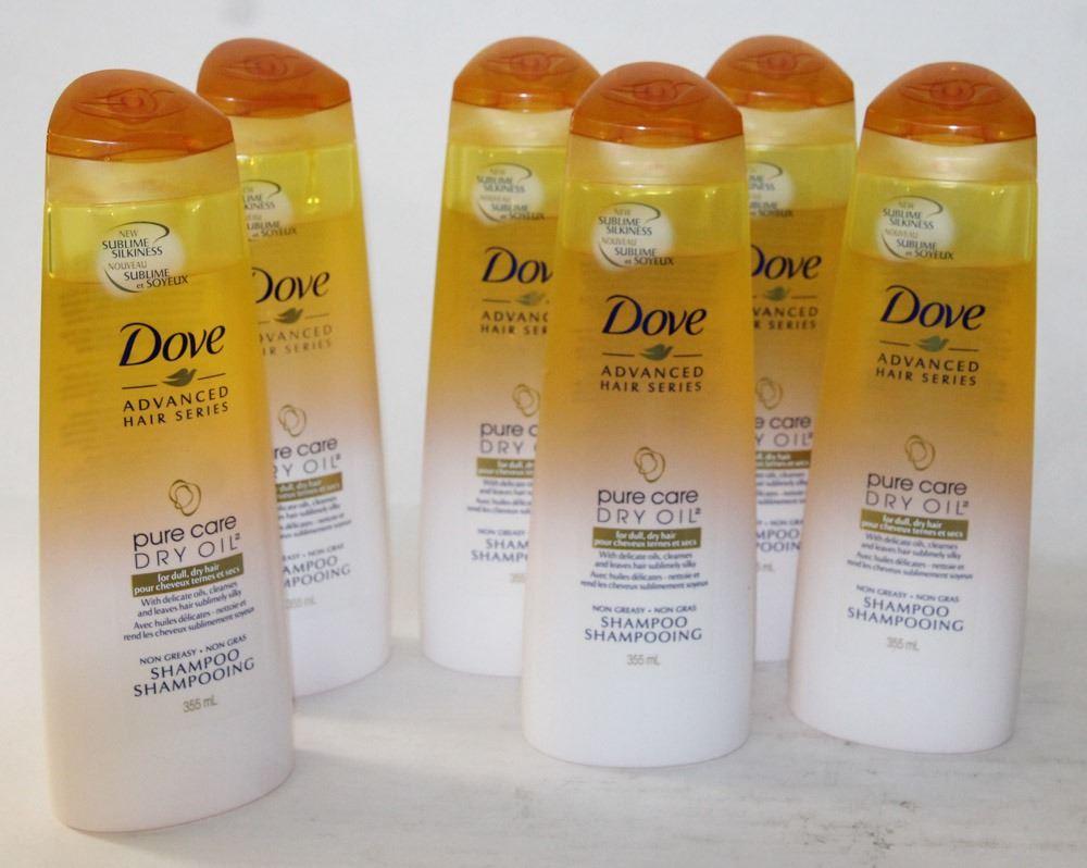 BAG OF 6 BOTTLES OF DOVE PURE CARE SHAMPOO 355 ML