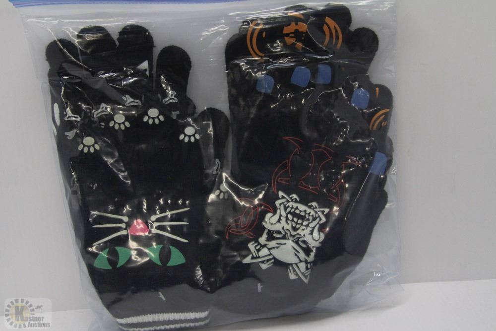 BAG OF 6 PAIR OF GLOW IN THE DARK HALLOWEEN GLOVES