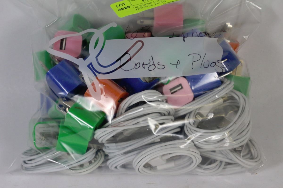 BAG OF 68 IPHONE 5 CHARGER CORDS AND WALL PLUGS