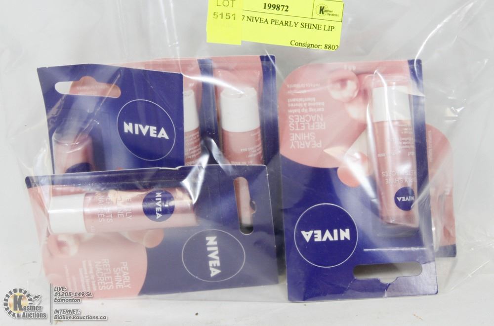 BAG OF 7 NIVEA PEARLY SHINE LIP BALM.