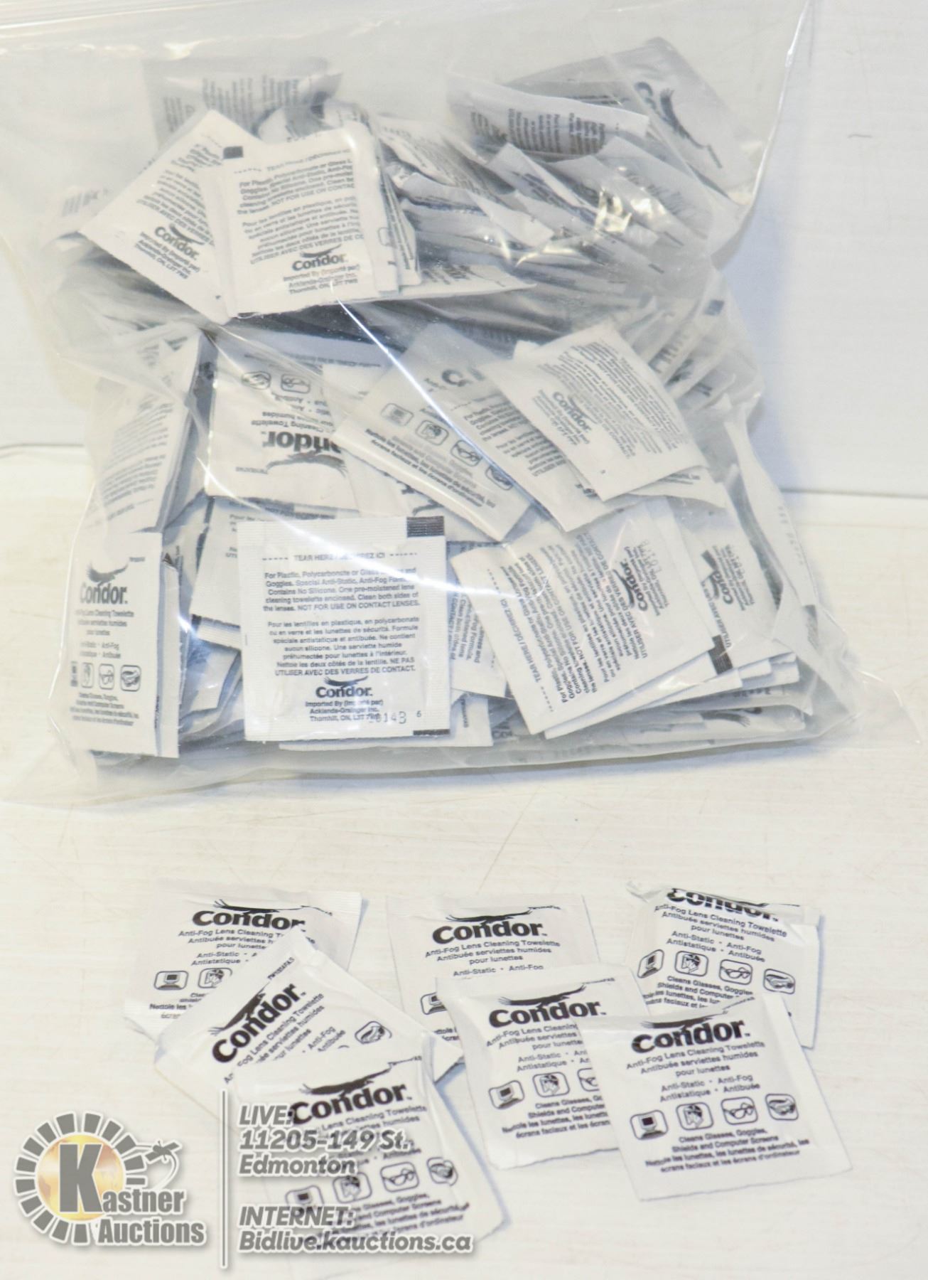 BAG OF ANTI FOG LENSE CLEANING TOWELETTES.