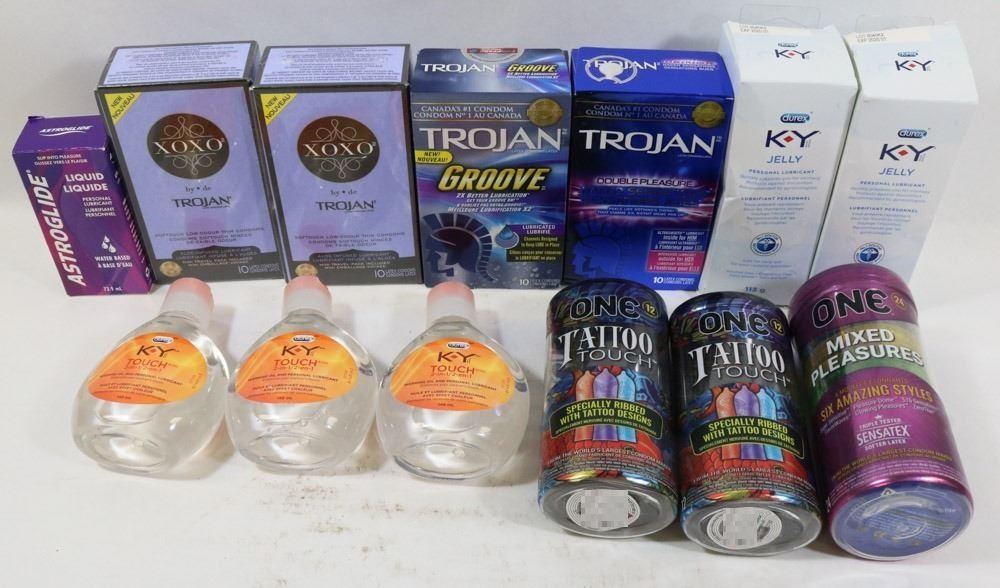 BAG OF ASSORTED CONDOMS AND LUBRICANTS