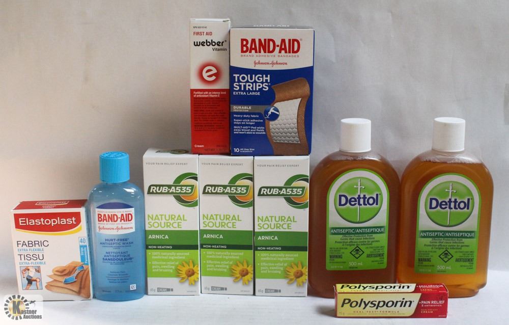 BAG OF ASSORTED FIRST AID ITEMS