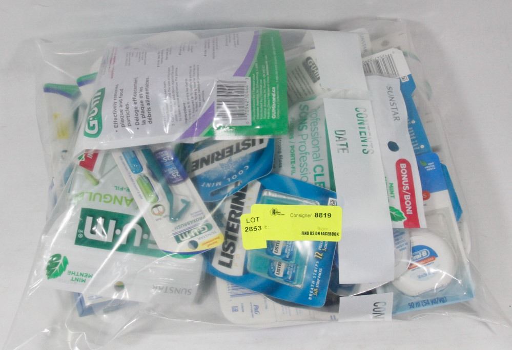 BAG OF ASSORTED FLOSS AND DENTAL PRODUCTS