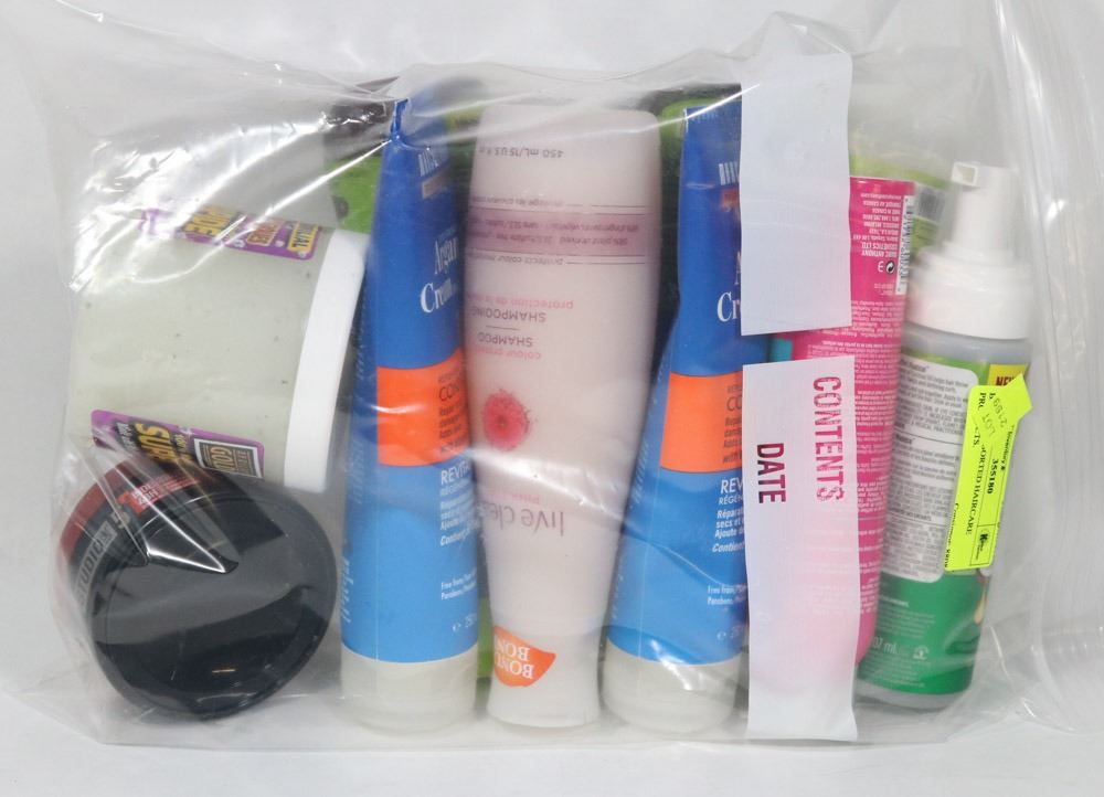 BAG OF ASSORTED HAIRCARE PRODUCTS.