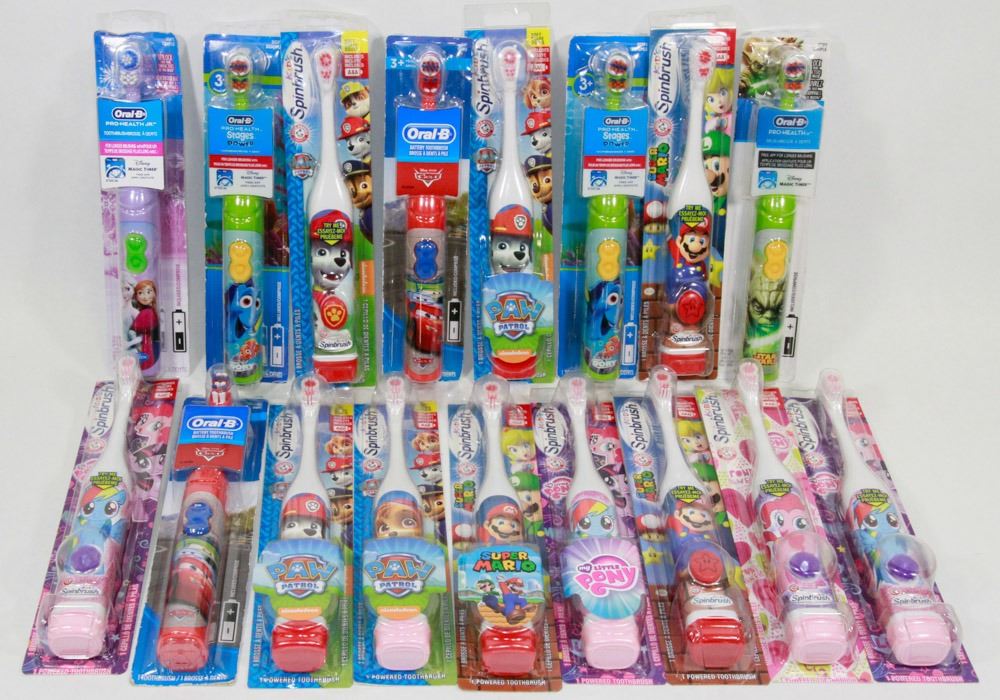 BAG OF ASSORTED KIDS ELECTRIC TOOTHBRUSHES