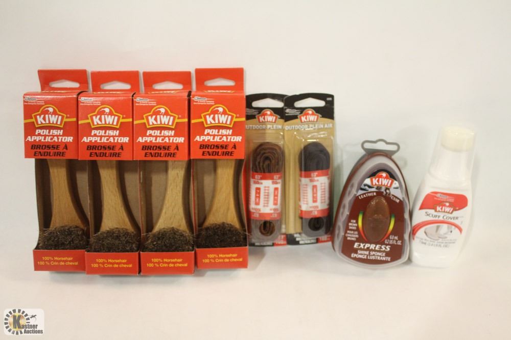 BAG OF ASSORTED KIWI SHOE POLISHING PRODUCTS