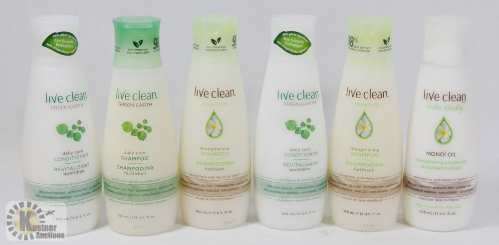 BAG OF ASSORTED LIVE CLEAN SHAMPOOS AND